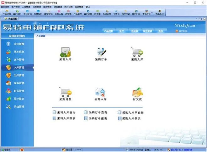 电镀行业的特殊性决定了普通ERP系统难以胜任管理需求。易特电镀ERP系统凭借对行业的深刻理解,打造了一套真正适合电镀厂使用的管理工具。从产品绑定到报价管理,从来料跟踪到生产报工,从库存控制到财务对账,系统覆盖了电镀企业运营的每一个关键环节。对于希望提升管理水平、降低运营风险的电镀厂来说,这无疑是一把打开数字化管理大门的金钥匙。