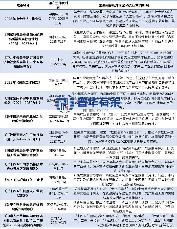 “十四五”以来,政策推动深空科技从顶层规划加速迈向产业培育。特别是2025年,其被首次与商业航天、低空经济并列列为“新兴产业”,战略地位独立凸显。《国家航天局推进商业航天高质量安全发展行动计划(2025-2027年)》出台22条精准措施,从场景开放、资源分享、资金支持到安全监管,全力推动商业化。同时,“十五五”规划建议与2025年中央经济工作会议强调“以科技创新引领现代化产业体系建设”,为深空科技注入了发展“新质生产力”的顶层动能,行业迎来“战略需求”与“市场牵引”双轮驱动的黄金期。