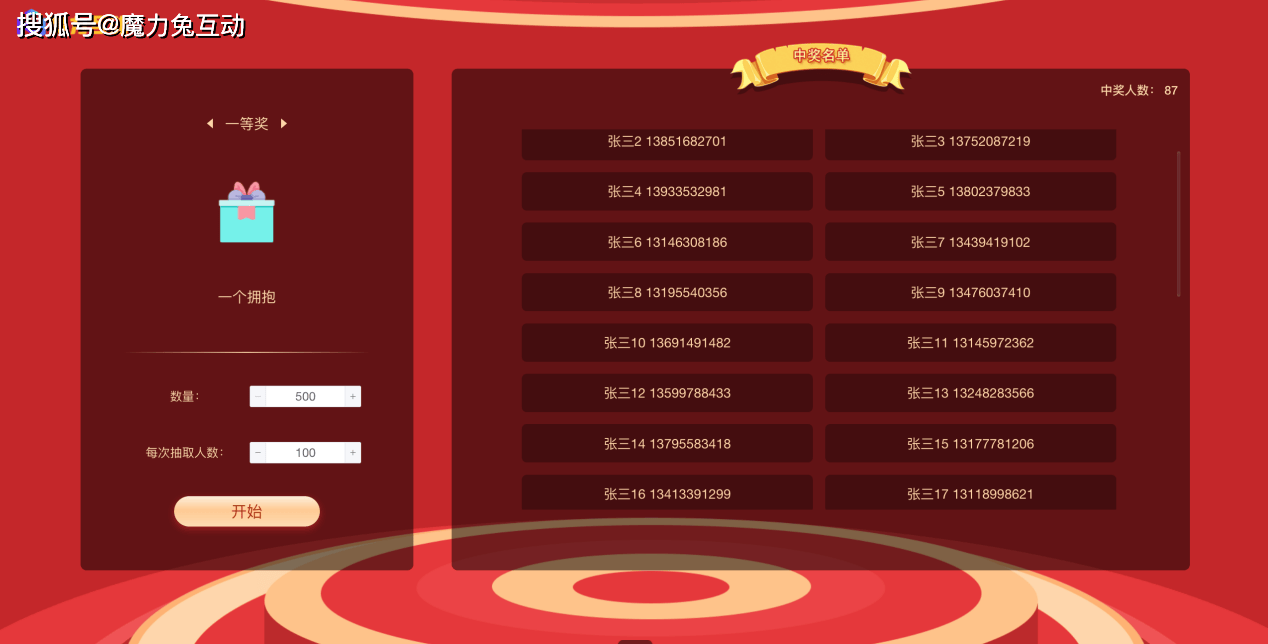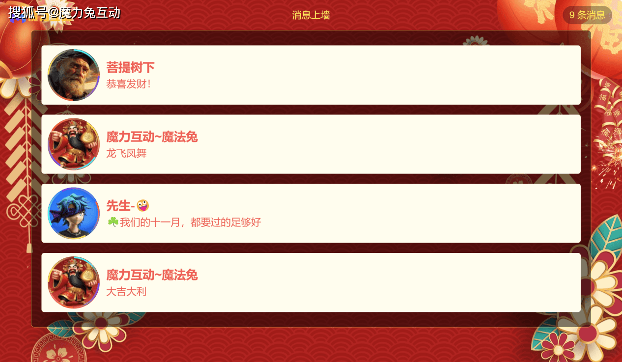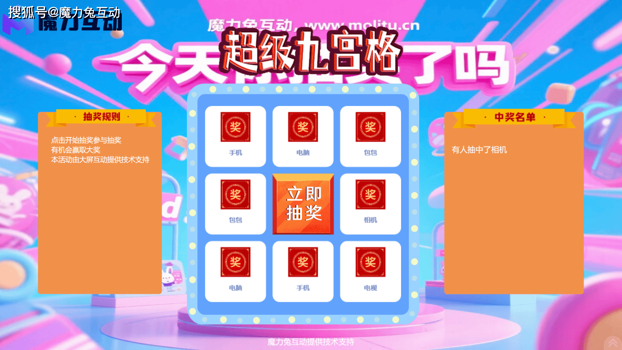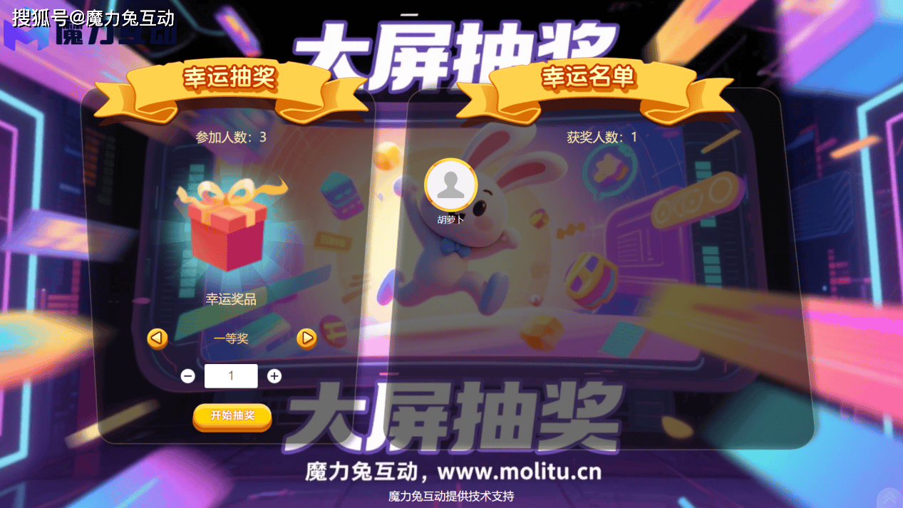 魔力兔互动是一款简单,高效,有趣的现场互动工具,个性化的微信墙,微信大屏幕制作软件工具。魔力兔互动,适用于年会庆典、企业营销、浪漫婚礼、会议论坛、校园户外、商业活动、培训演出、创投路演等现场活动。包括微信上墙、弹幕、签到、抽奖、等现场必备功能,更有摇一摇,赛车,赛马,红包雨,数钱等有趣的现场互动大屏幕游戏,现场互动营销效果佳,微信增粉快。赶紧来免费体验吧返回搜狐,查看更多